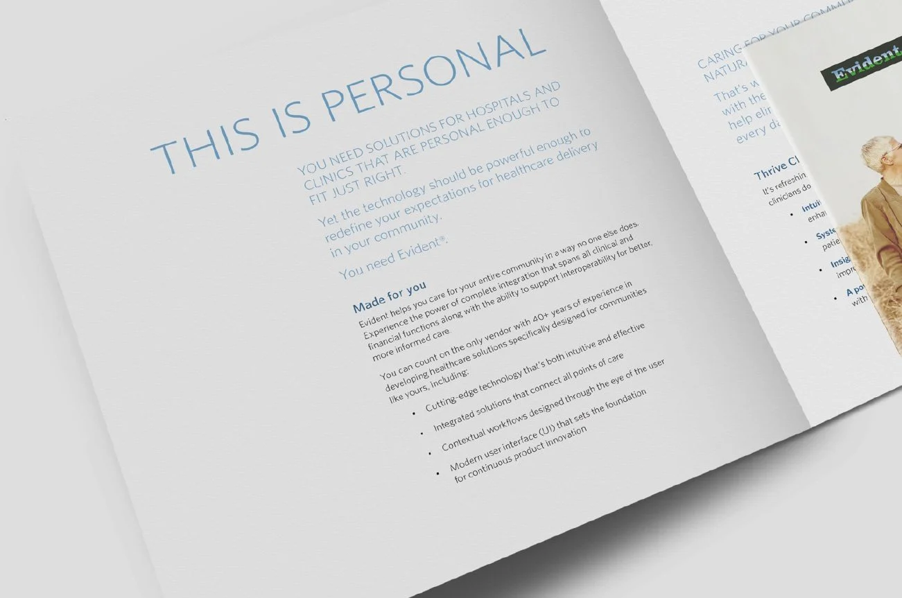 A complement to the website, this briefer snapshot needed to quickly show the human side of small community healthcare while inspiring readers to learn more on the web or contact a sales rep.