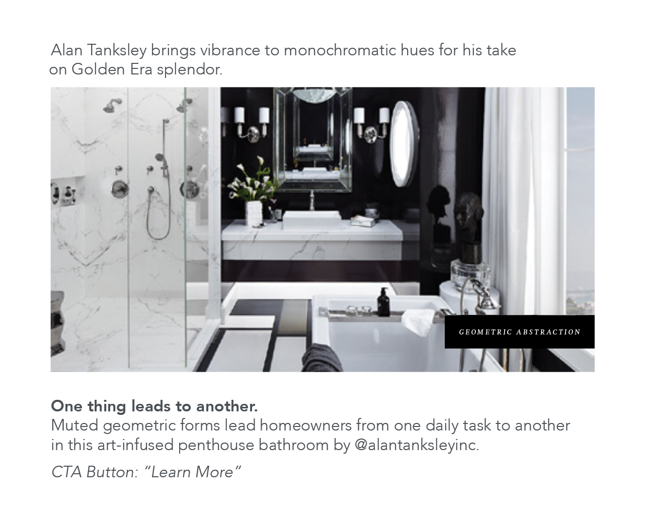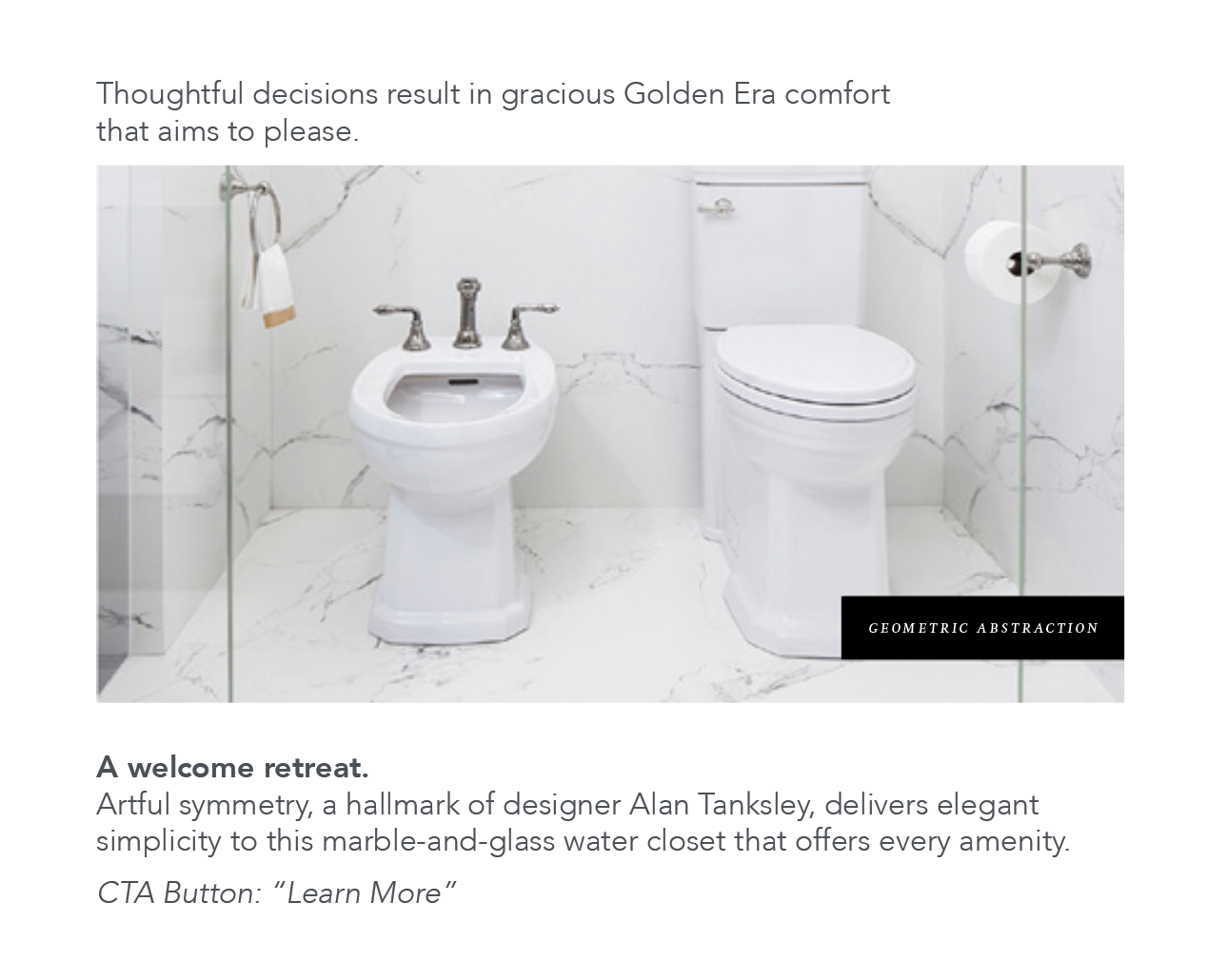 This luxury brand, owned by the same company as American Standard, sought to showcase how their historic collection of fixtures and products can bring bathrooms to new levels of bravo. So how do you establish the value of wonder and intentionality for something that typically exists within the realm of basic-is-good-enough?