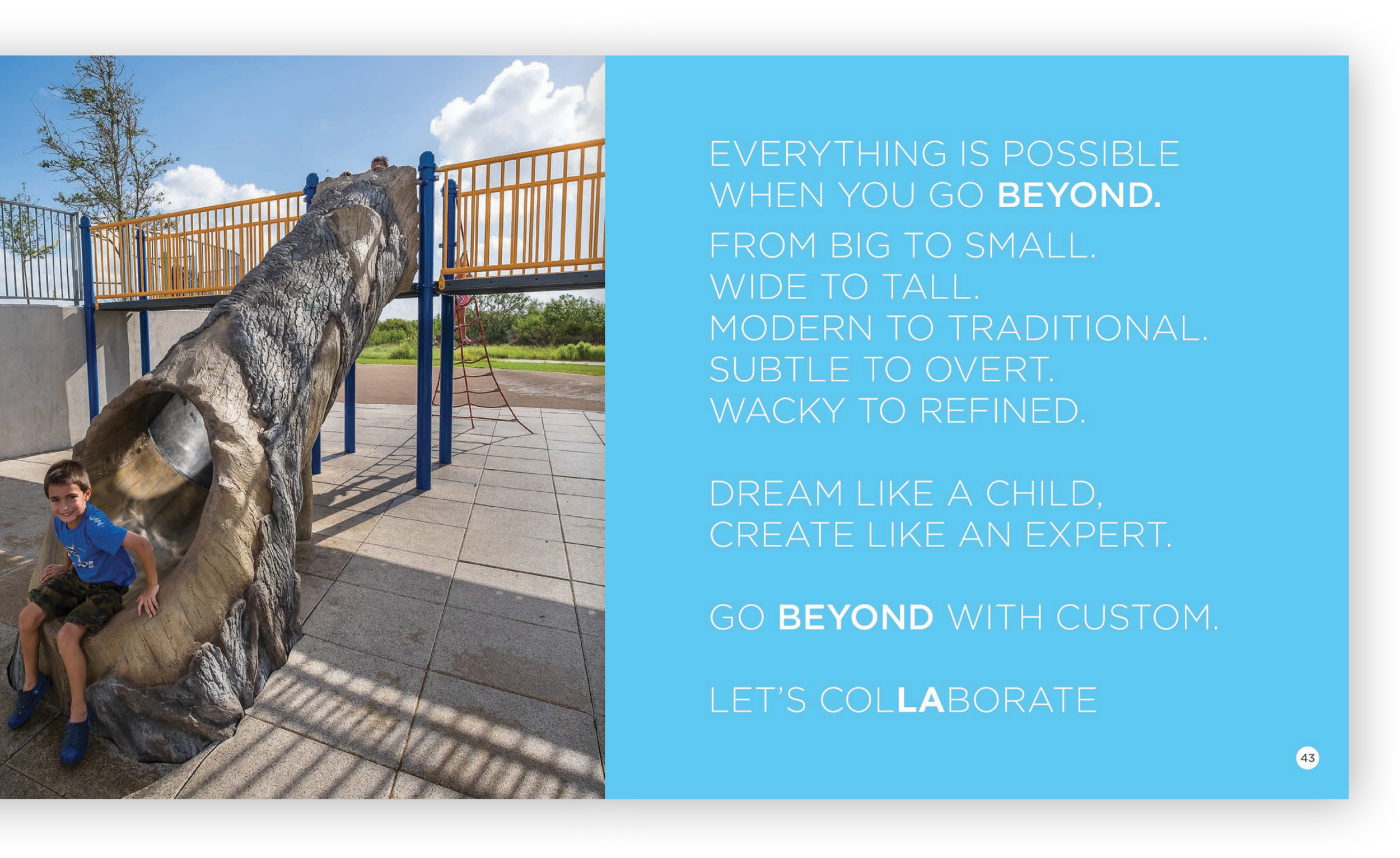 Since Landscapes Structures was founded by a landscape architect, or LA, this is a significant audience for them. The first annual PLAY book premiered at the American Society of Landscape Architects (ASLA) Conference in 2012, positioning Landscapes Structures as the playground equipment design partner of choice.